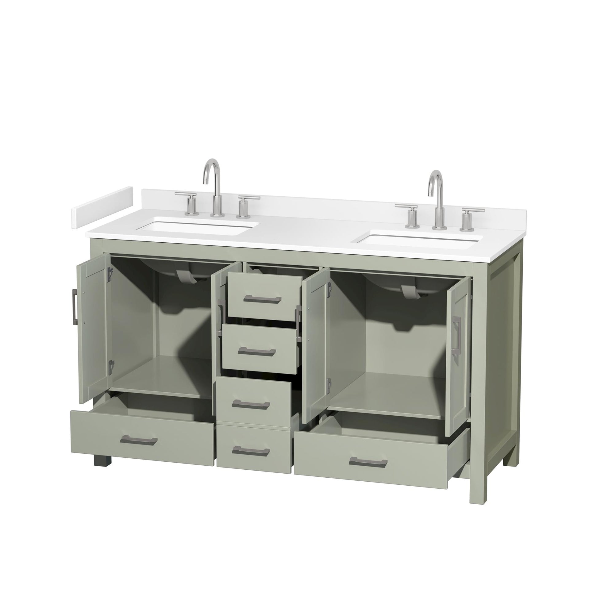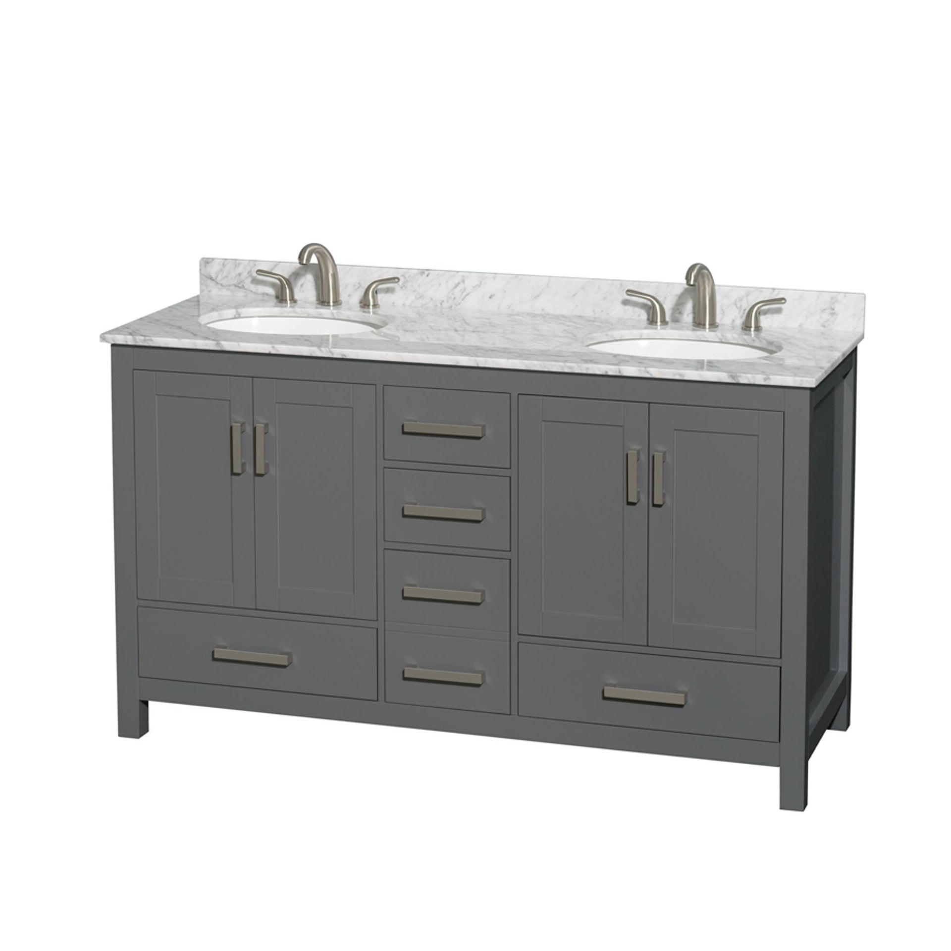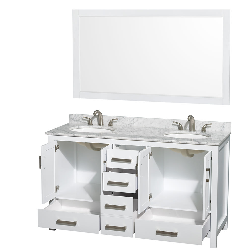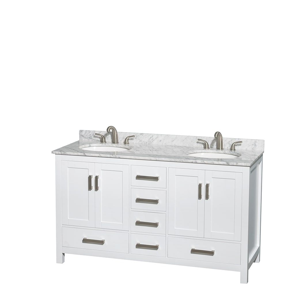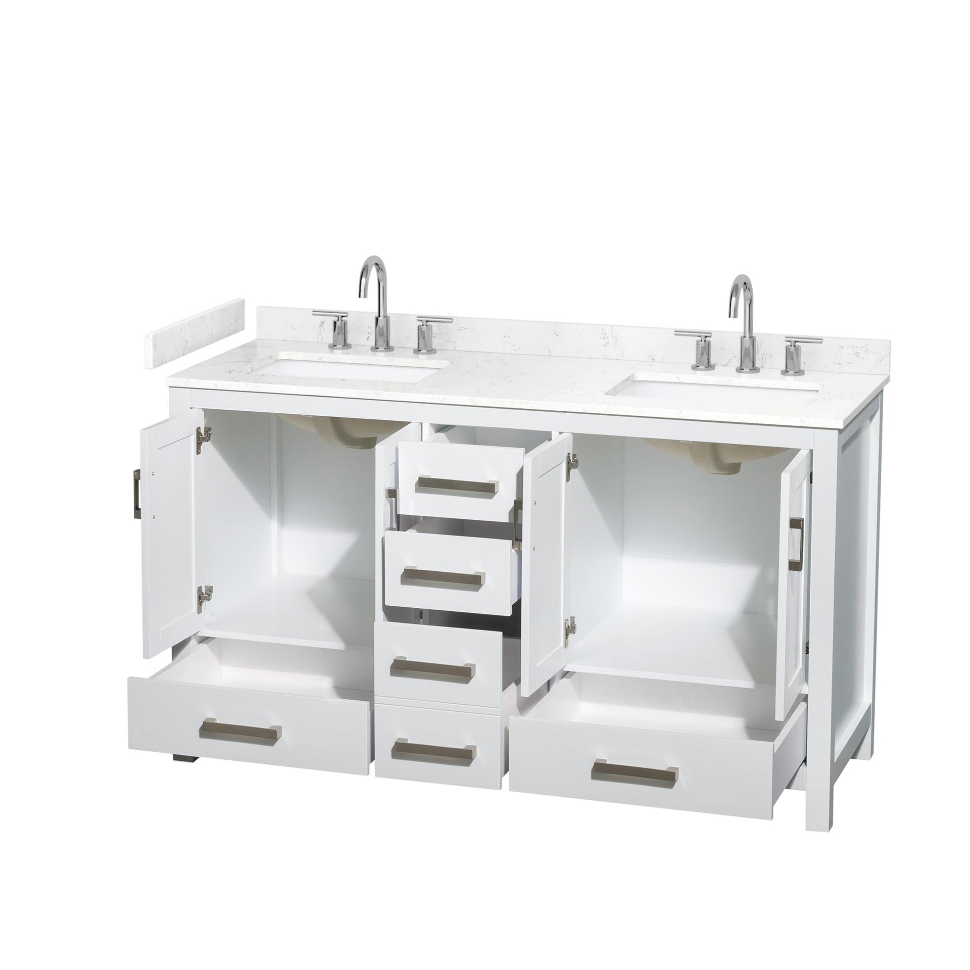 Sheffield Bathroom Vanity with Countertop 60 inch Double Sink 3-hole Faucet Setup