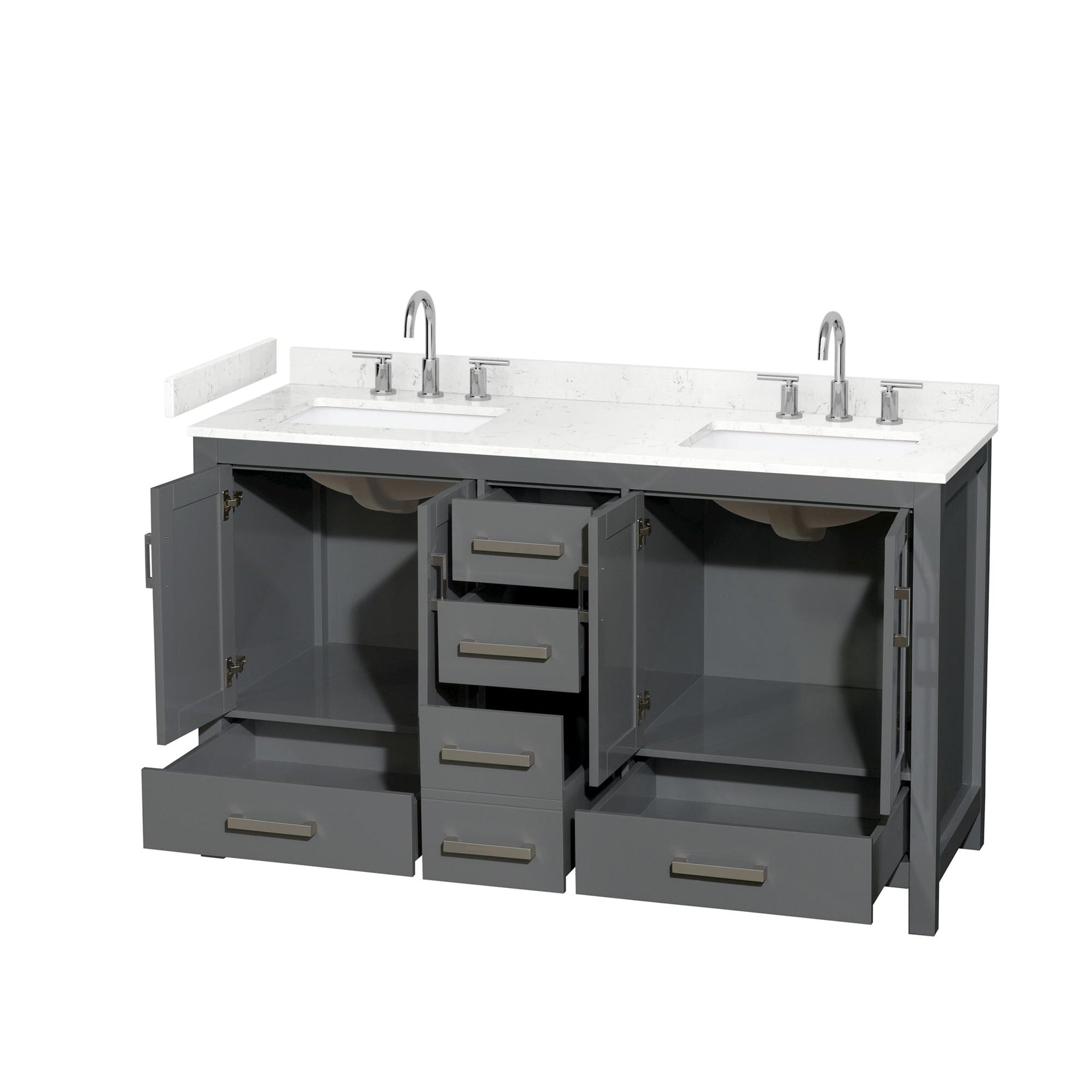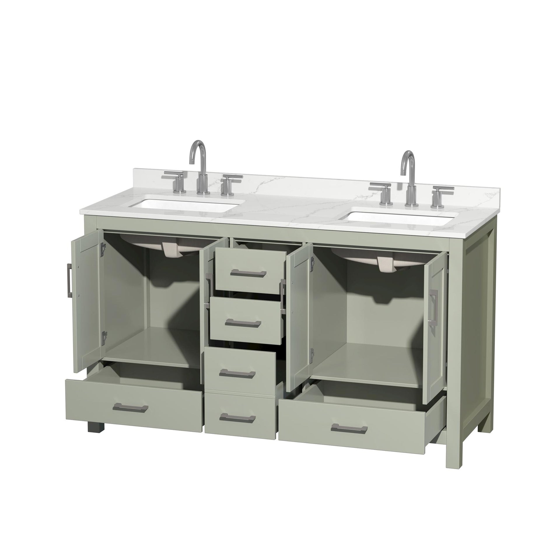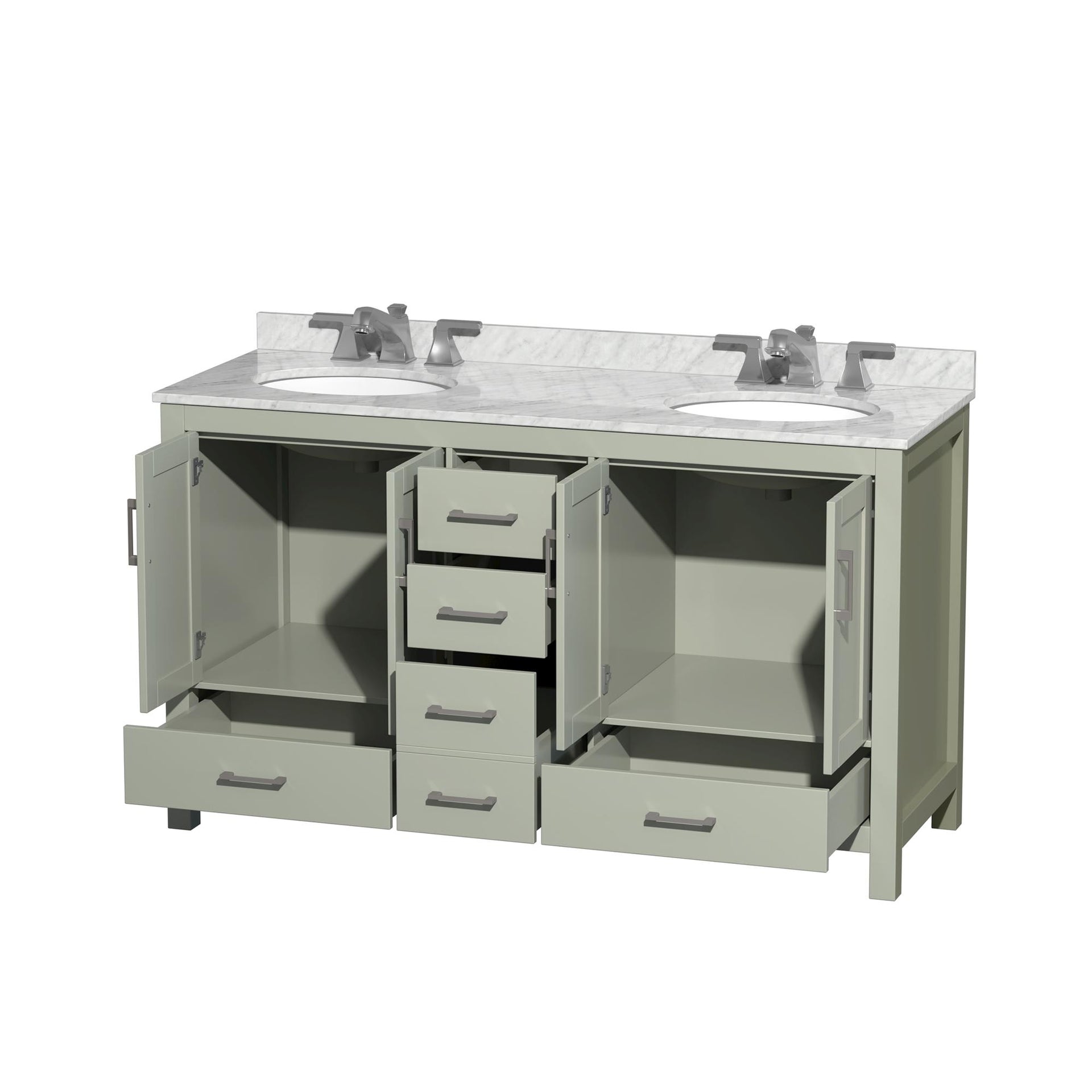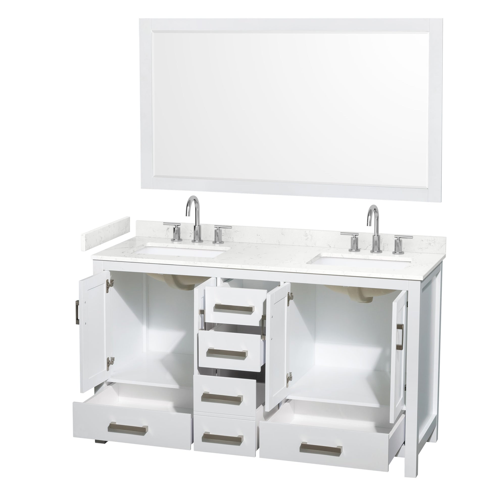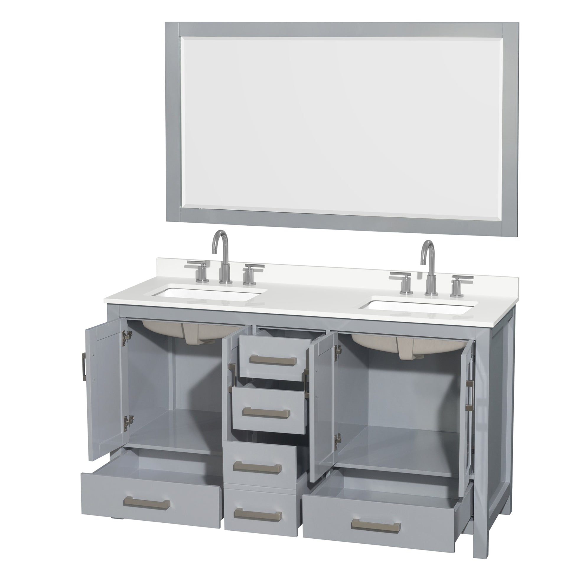 Sheffield Bathroom Vanity with Countertop 60 inch Double Sink 3-hole Faucet Setup