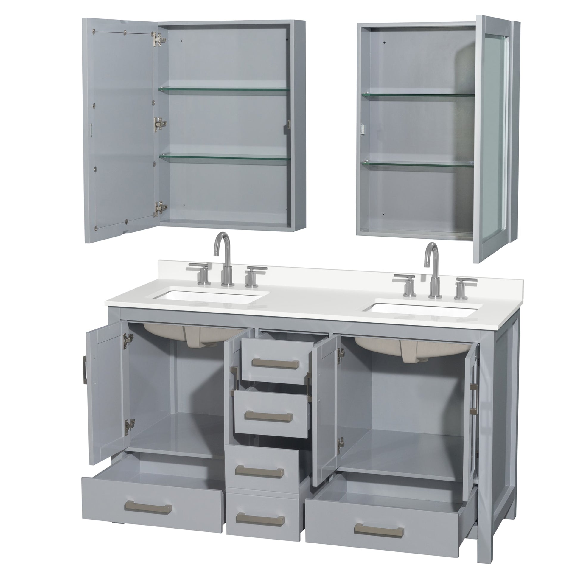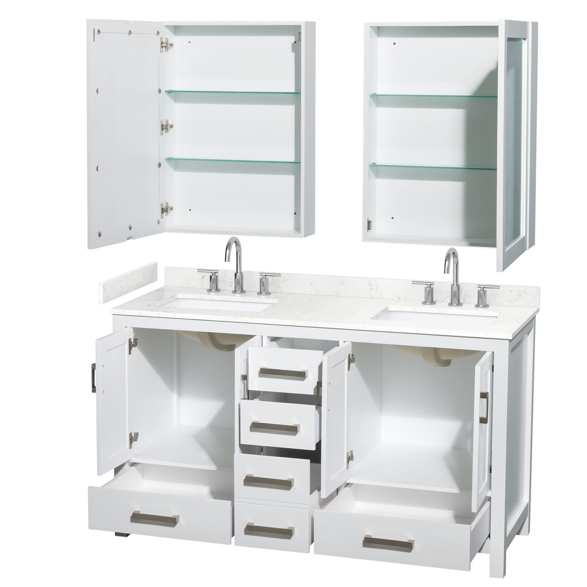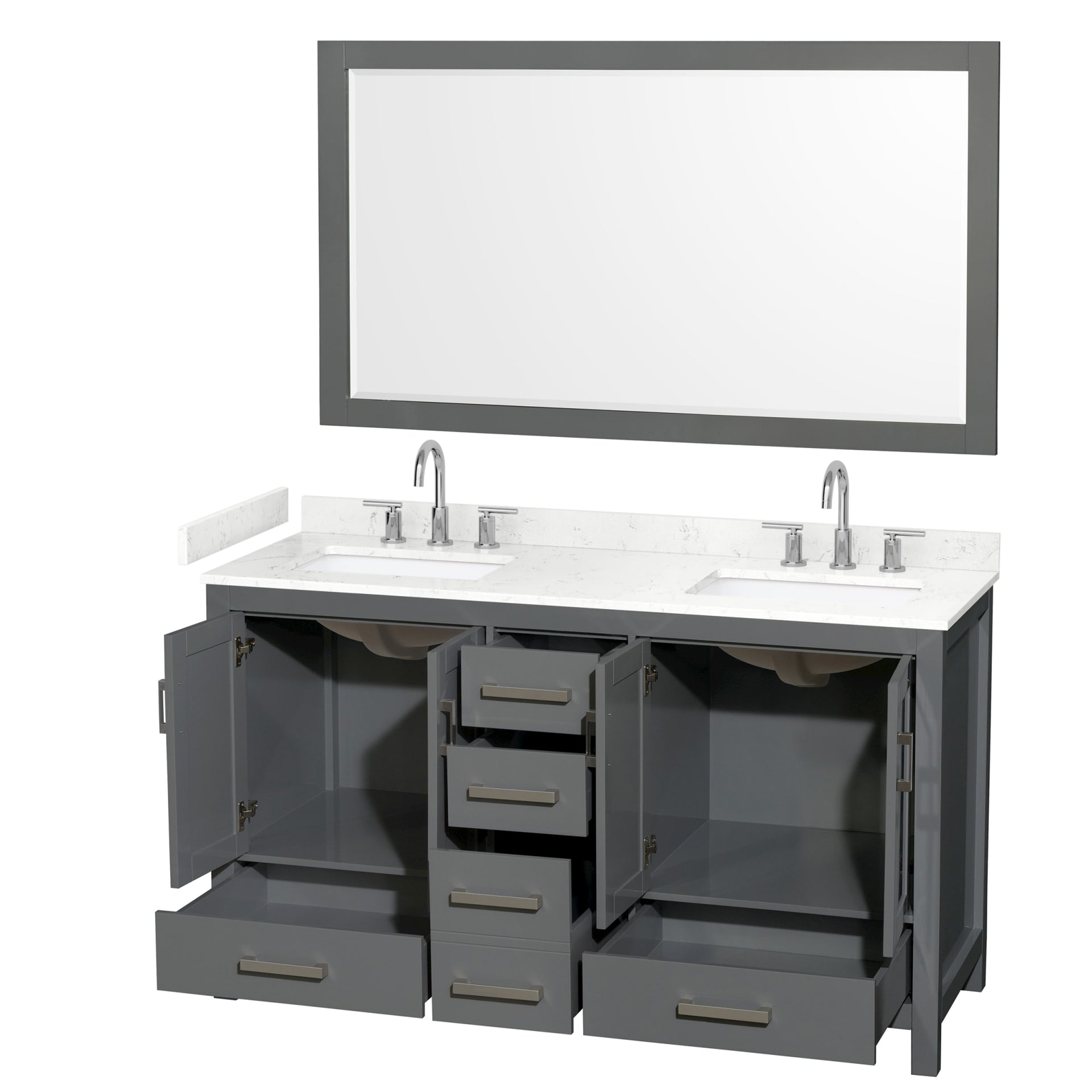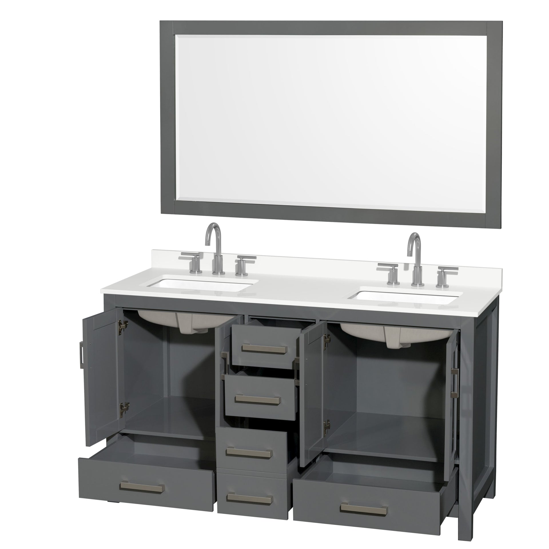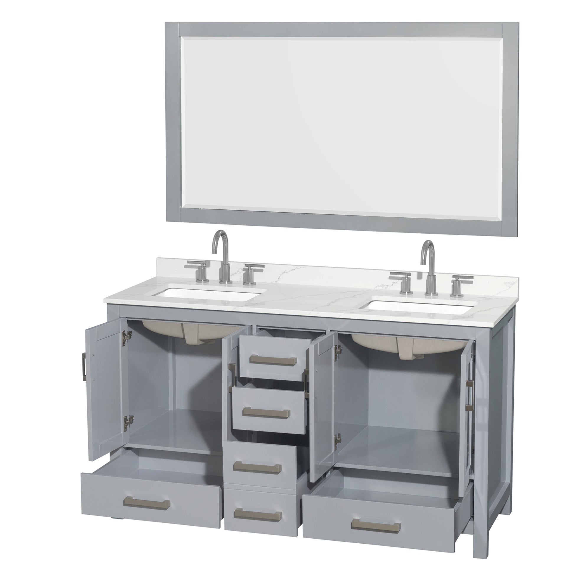 Sheffield Bathroom Vanity with Countertop 60 inch Double Sink 3-hole Faucet Setup