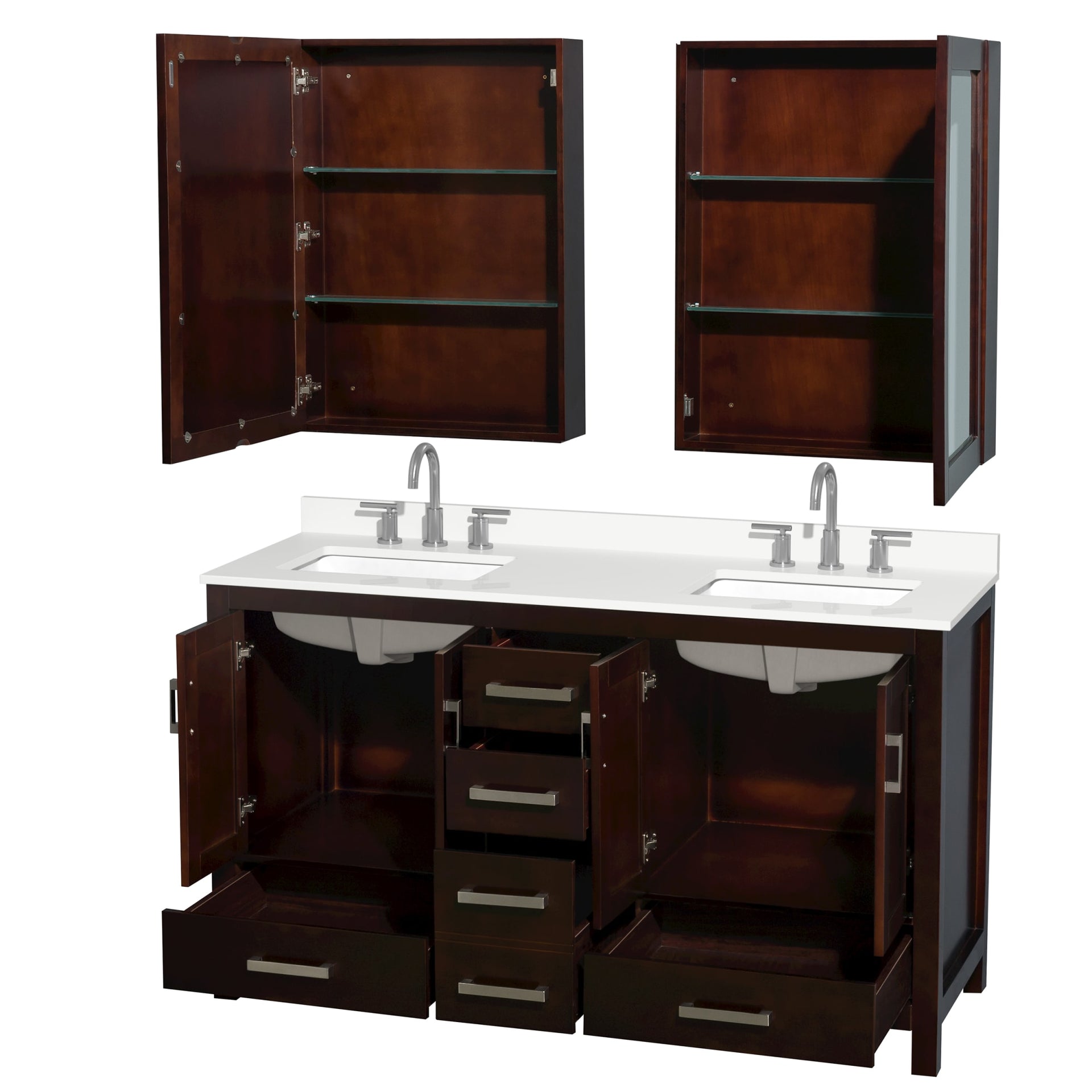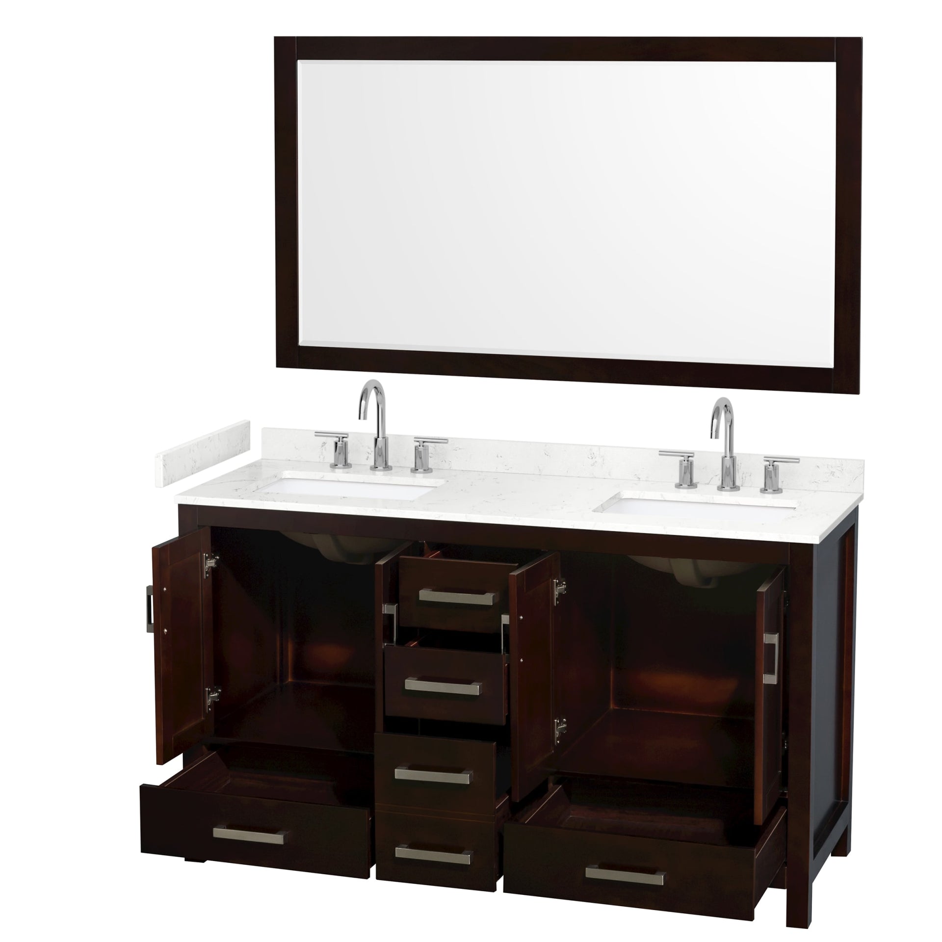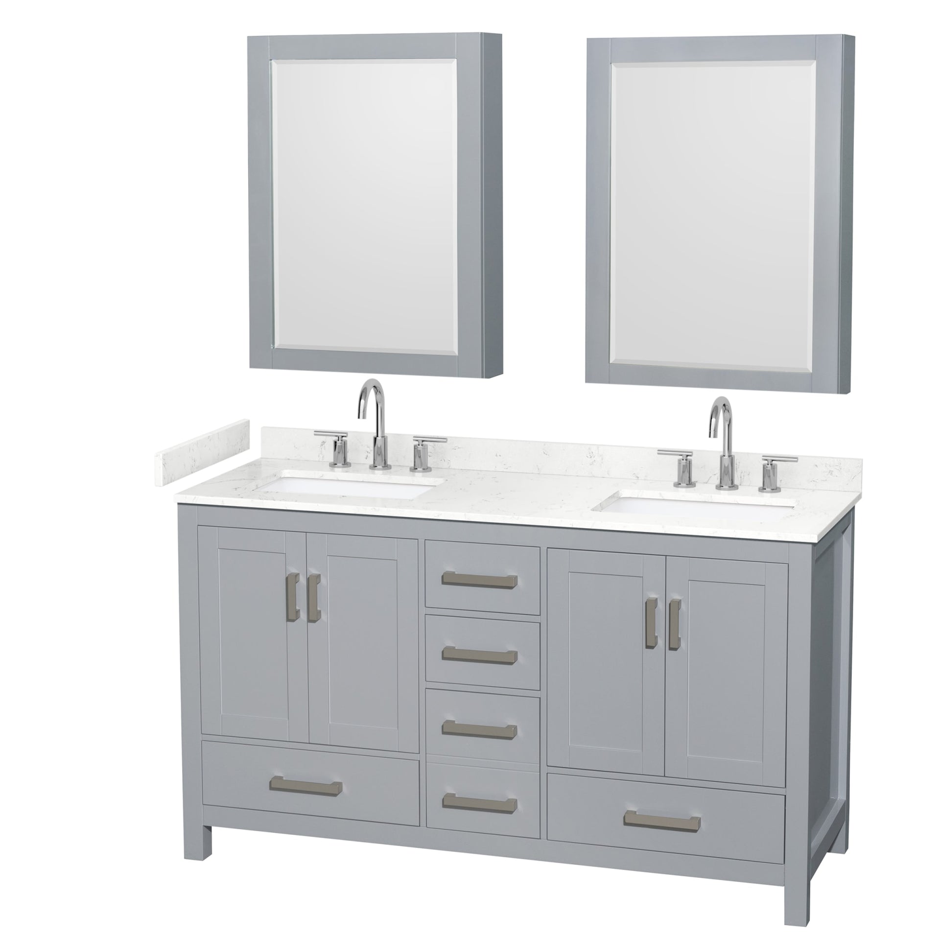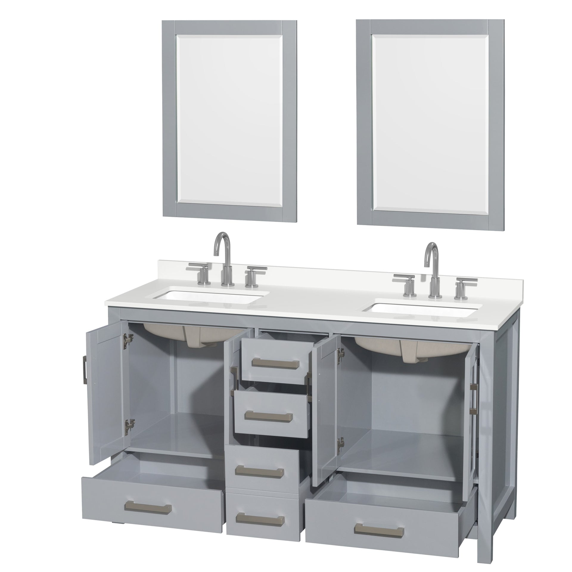 Sheffield Bathroom Vanity with Countertop 60 inch Double Sink 3-hole Faucet Setup