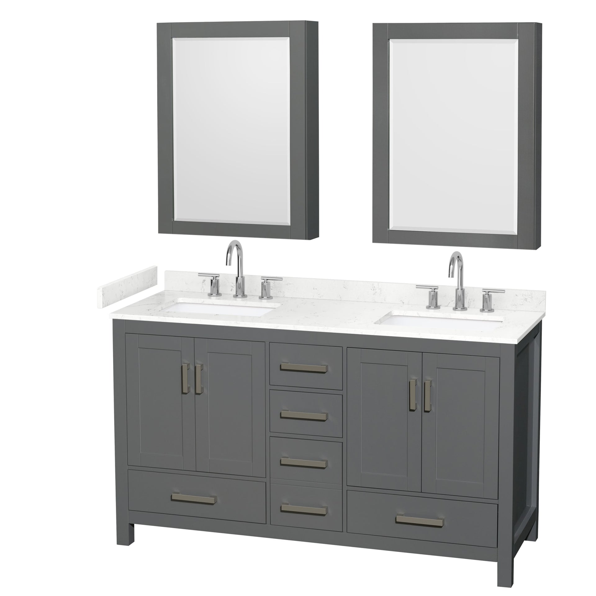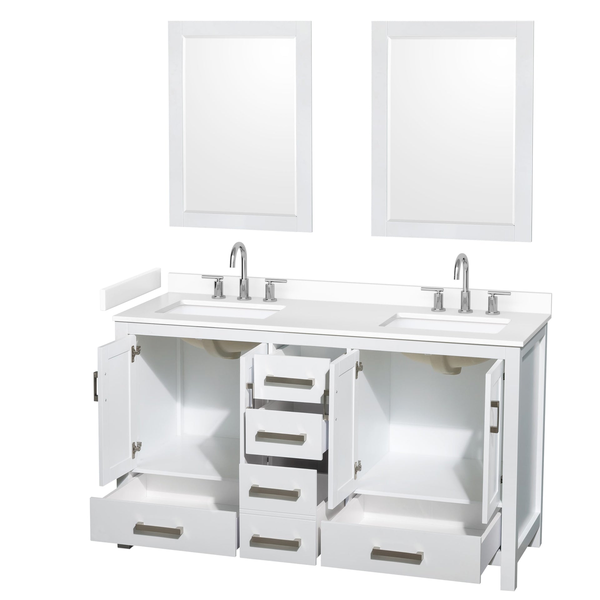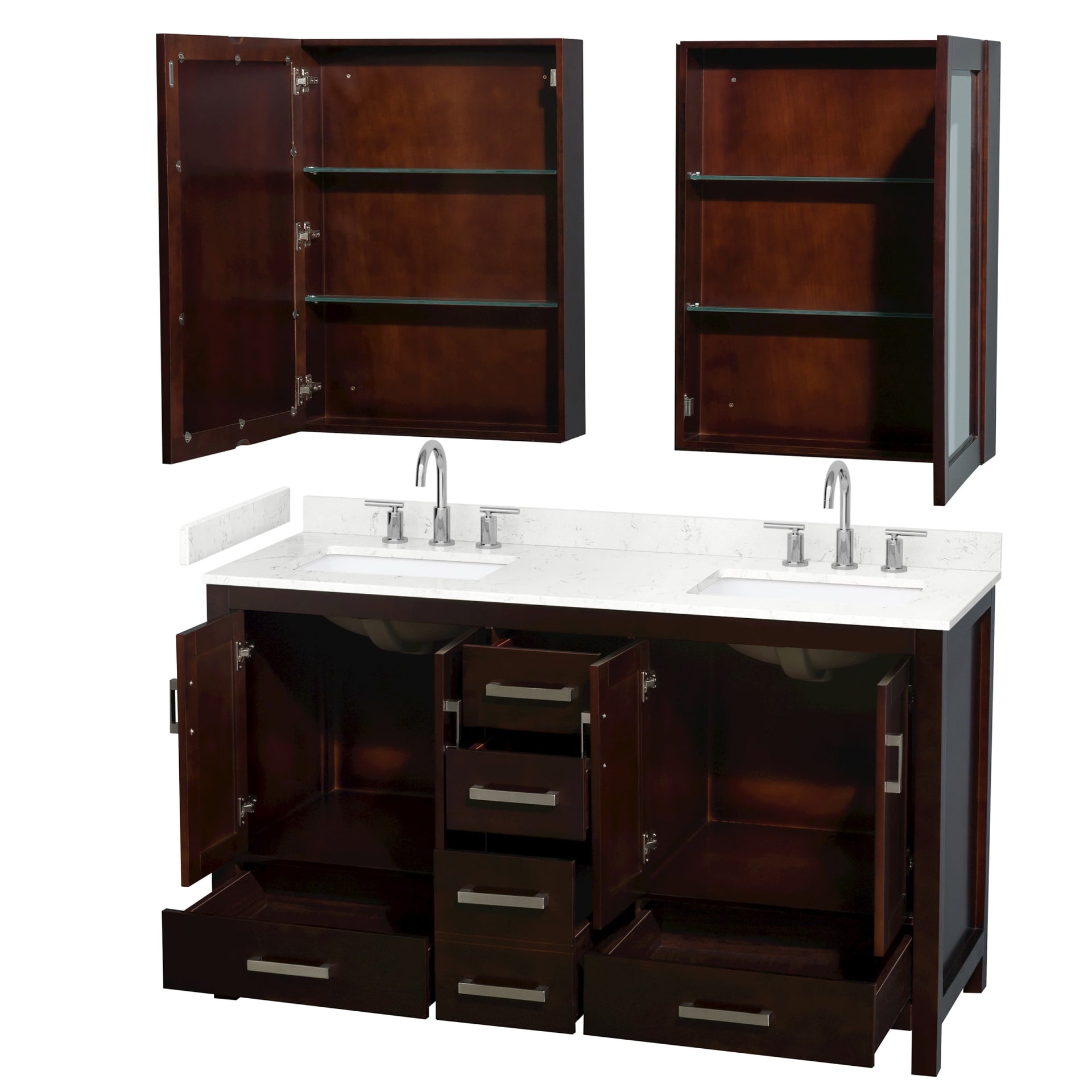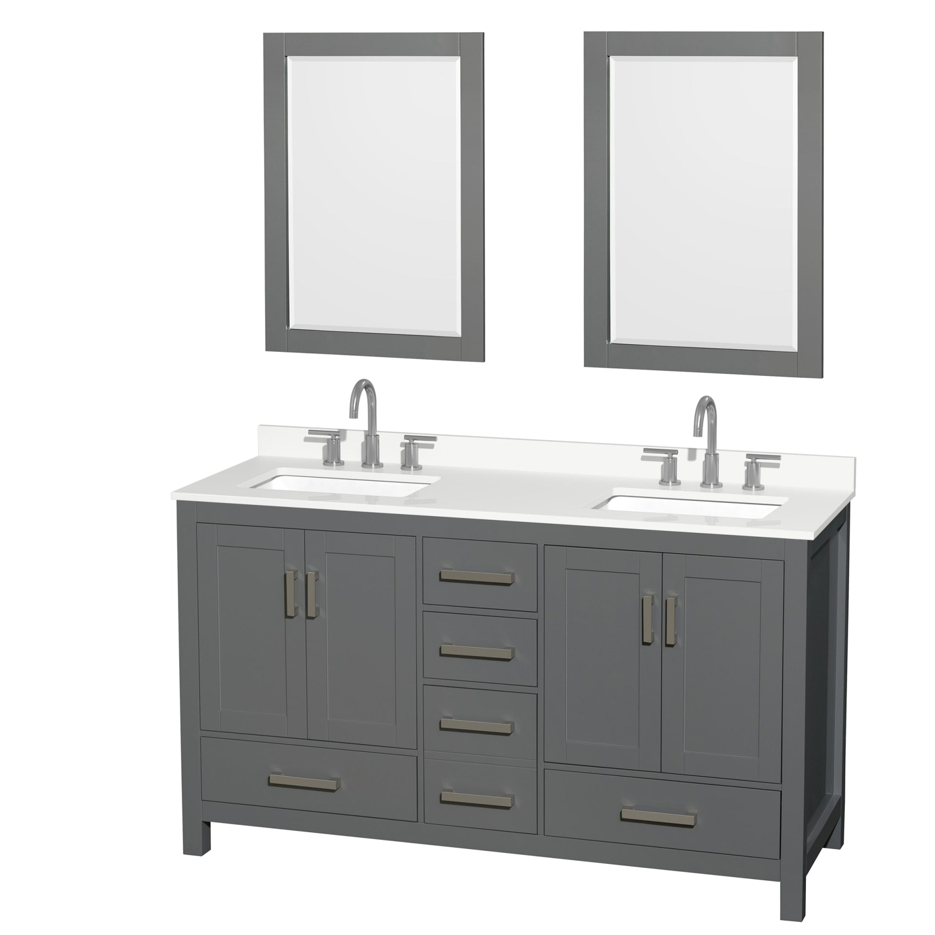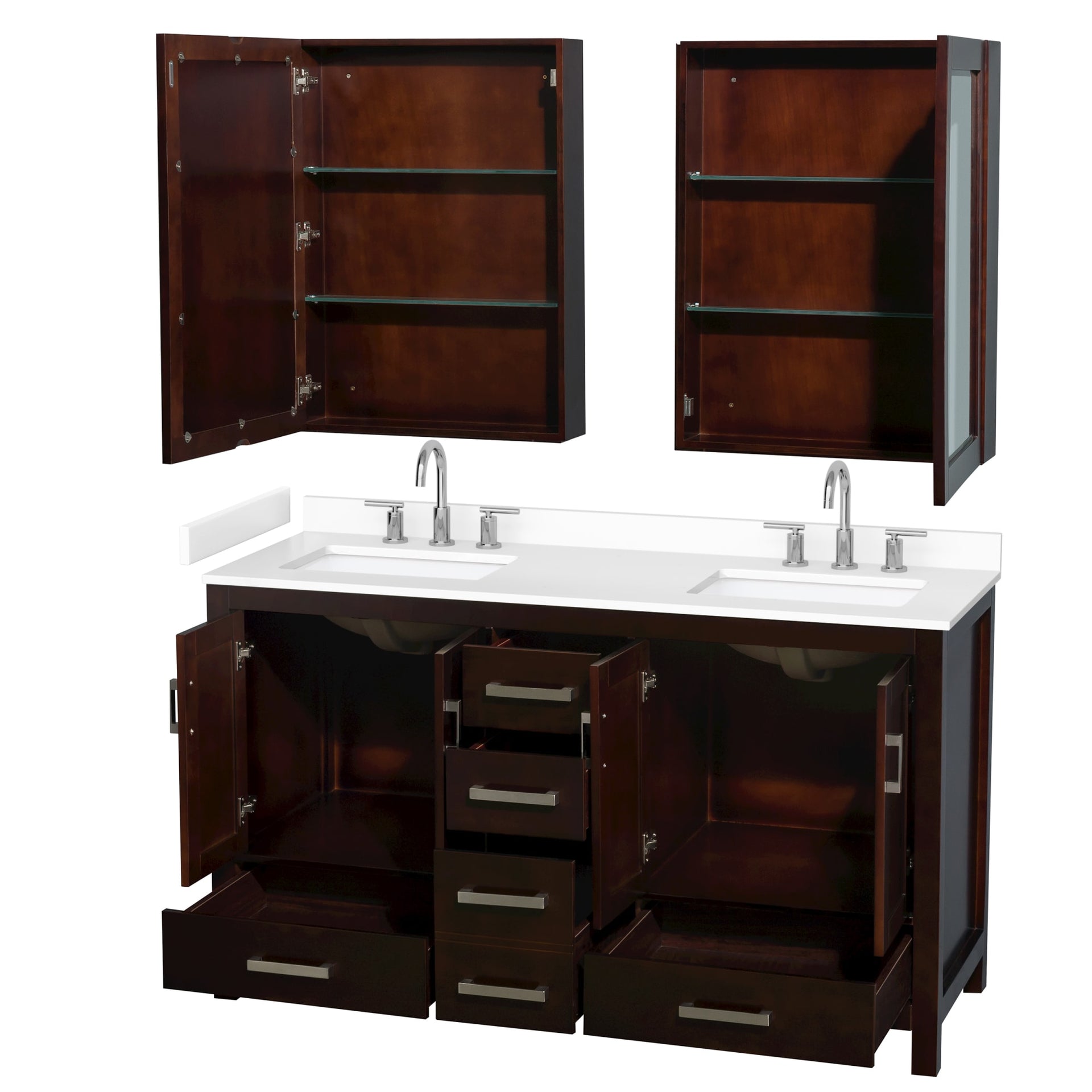 Sheffield Bathroom Vanity with Countertop 60 inch Double Sink 3-hole Faucet Setup