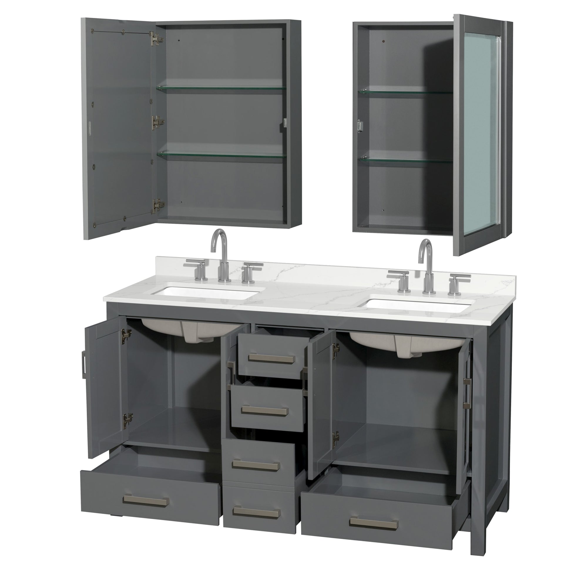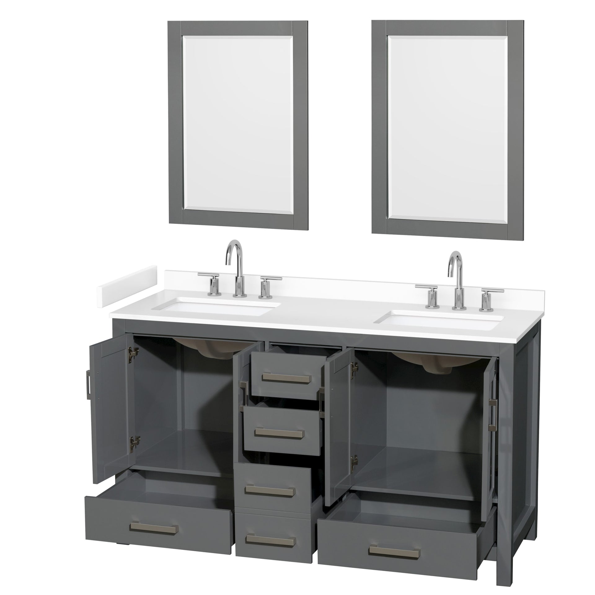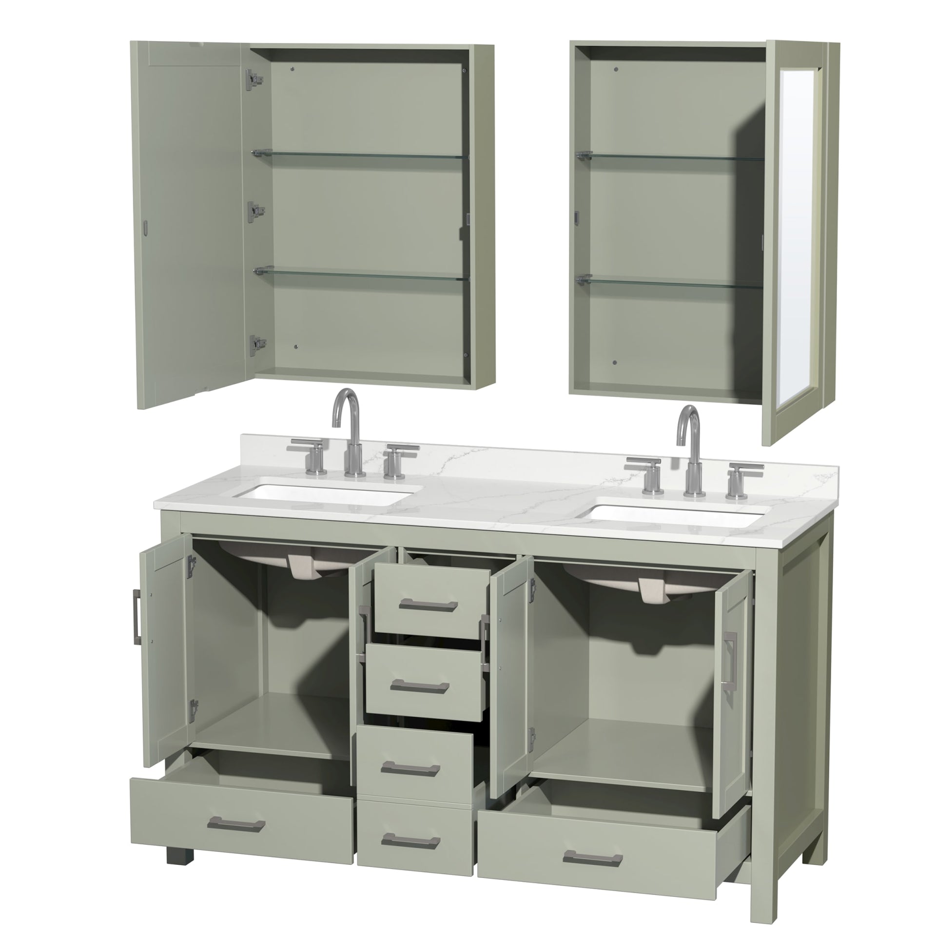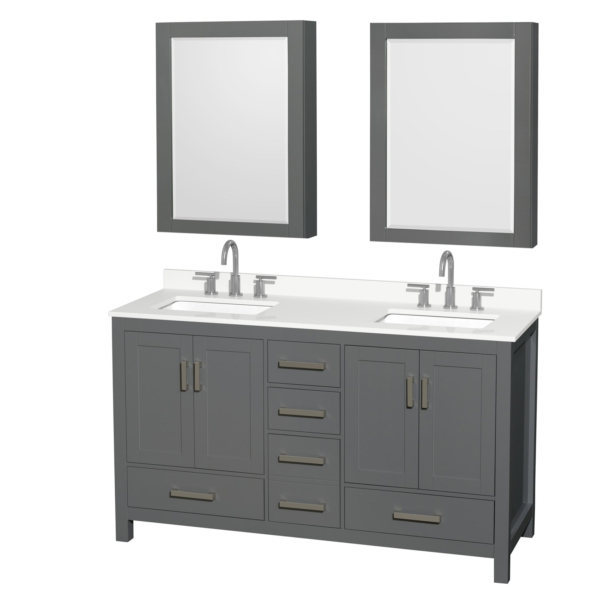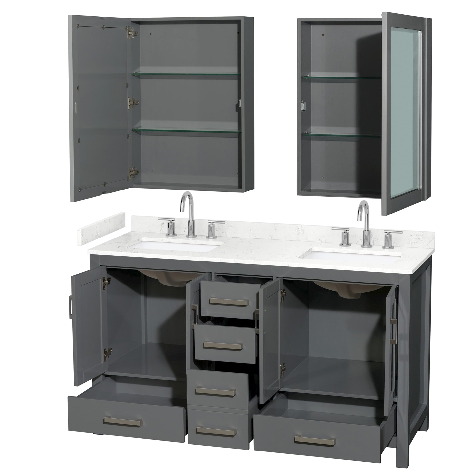Sheffield Bathroom Vanity with Countertop 60 inch Double Sink 3-hole Faucet Setup