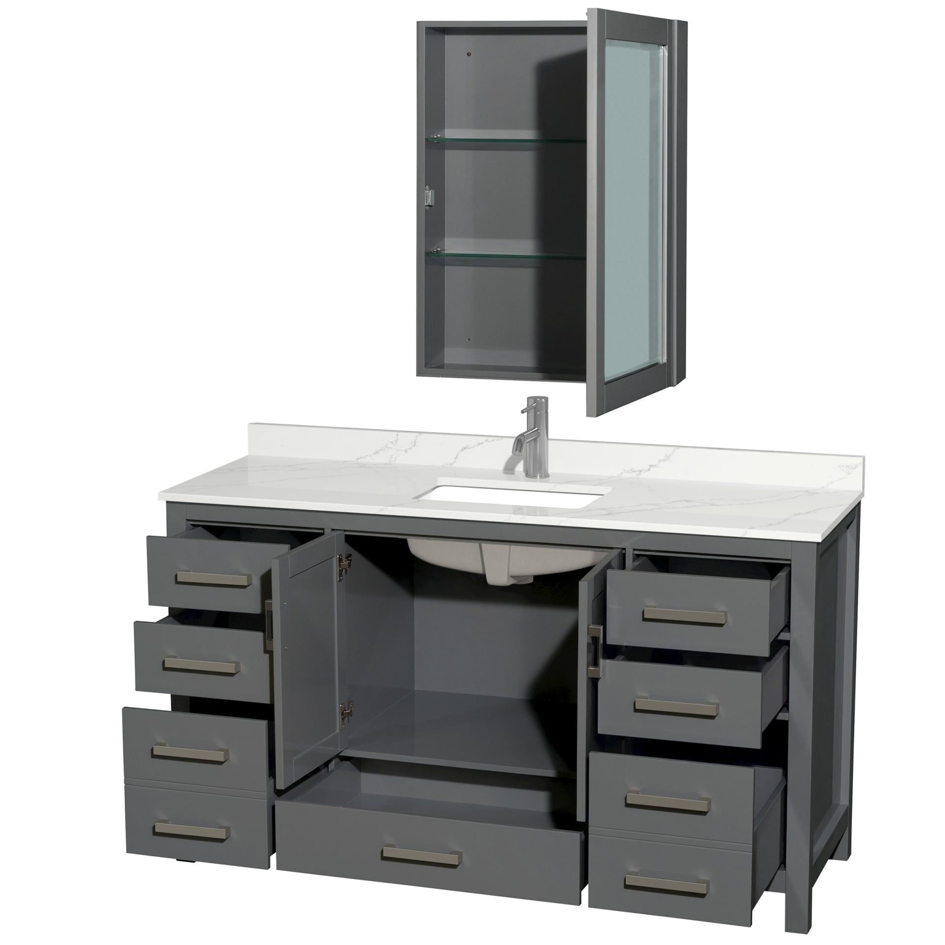 Sheffield Bathroom Vanity with Countertop 60 inch Single Sink Single hole Faucet Setup